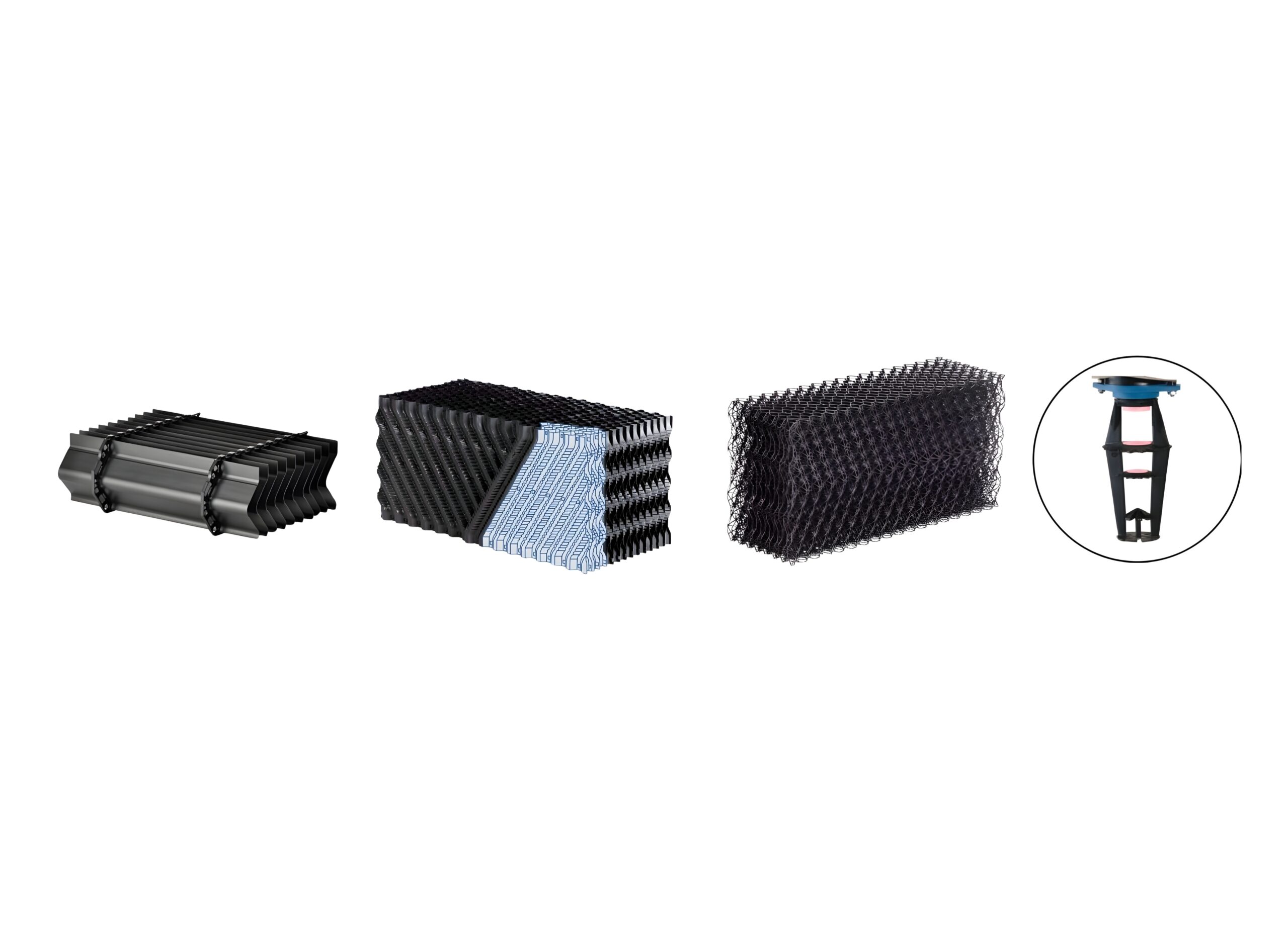 Wet Cooling: Splash fills, film fills, drift eliminators, and spray nozzles.