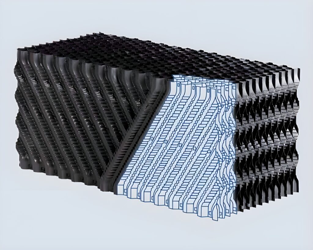 Evaporative cooling towers are still considered the most efficient way of cooling process water at industrial sites all over the world. With economic and ecological factors always an important consideration, construction and operation of wet cooling towers necessitates the use of efficient fills and drift eliminators. As the pioneer of plastic components for cooling tower applications we help our customers to meet their requirements.